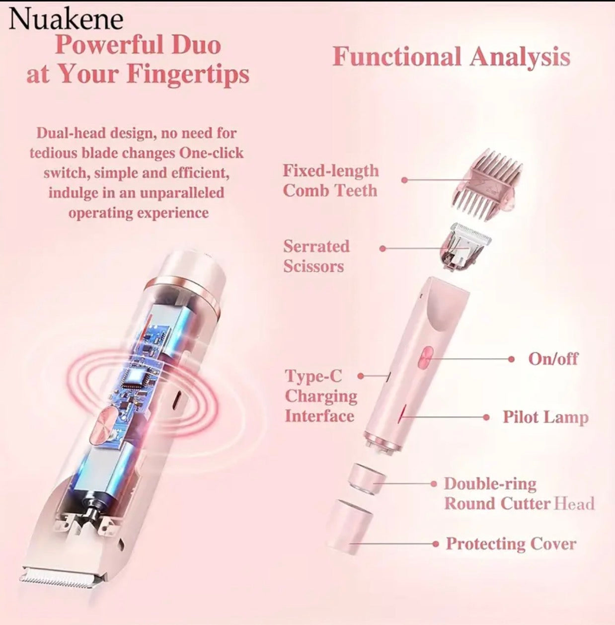 The Dual-Head Electric Hair Trimmer offers effortless, precise, and gentle grooming for every area of your body. Designed with stainless steel blades and a sleek black finish, this multipurpose trimmer easily removes unwanted hair from the bikini line, face, arms, legs, and thighs without irritation. Powered by a rechargeable 400mAh lithium battery with USB charging, it’s compact, cordless, and travel-friendly.